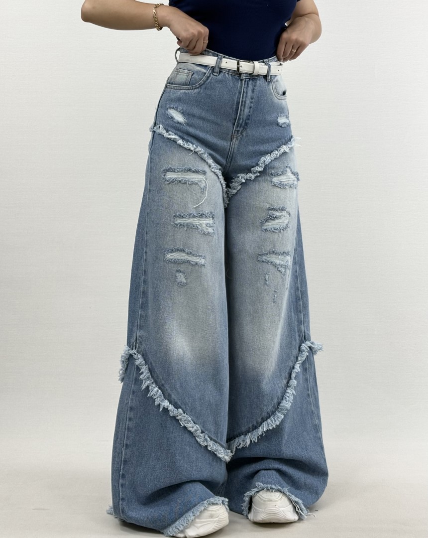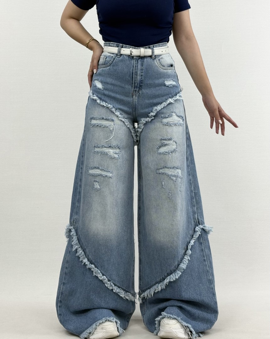 شلوار بگ زخمی(2): متغیر های محصول: رنگ :ذغالی سایز بندی (30.31.32.33.34.)=(36.38.40.42.44) مناسب برای تمامی فصل ها توضیحات درباره محصول: جنس: