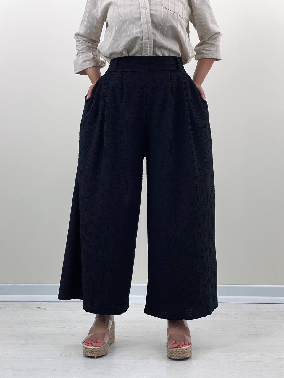 شلوار بگ مازارتی (4): متغیر های محصول: رنگ :مشکی سایز:فری سایز(36تا44) مناسب برای تمامی فصل ها توضیحات درباره محصول: جنس:مازراتی