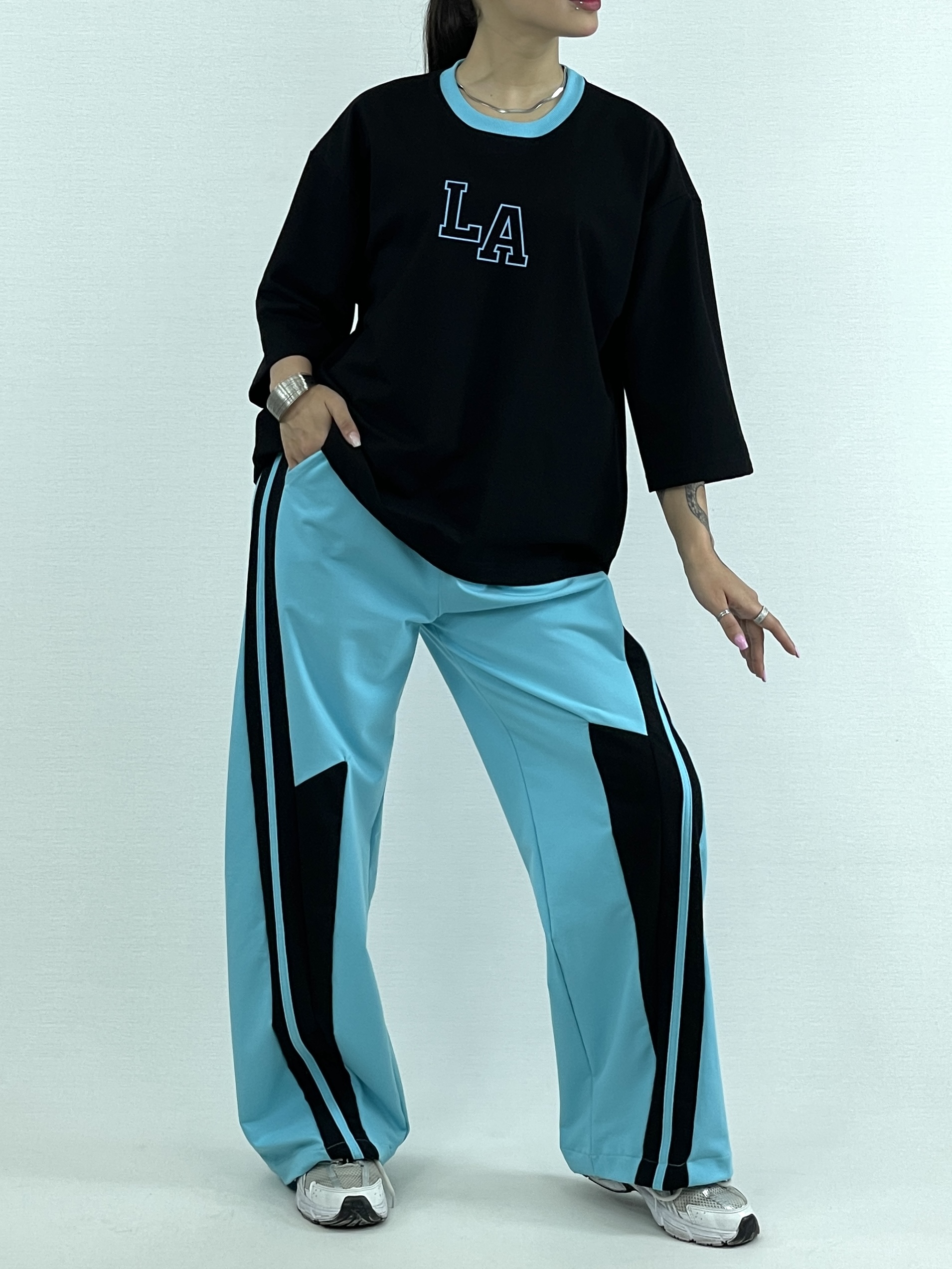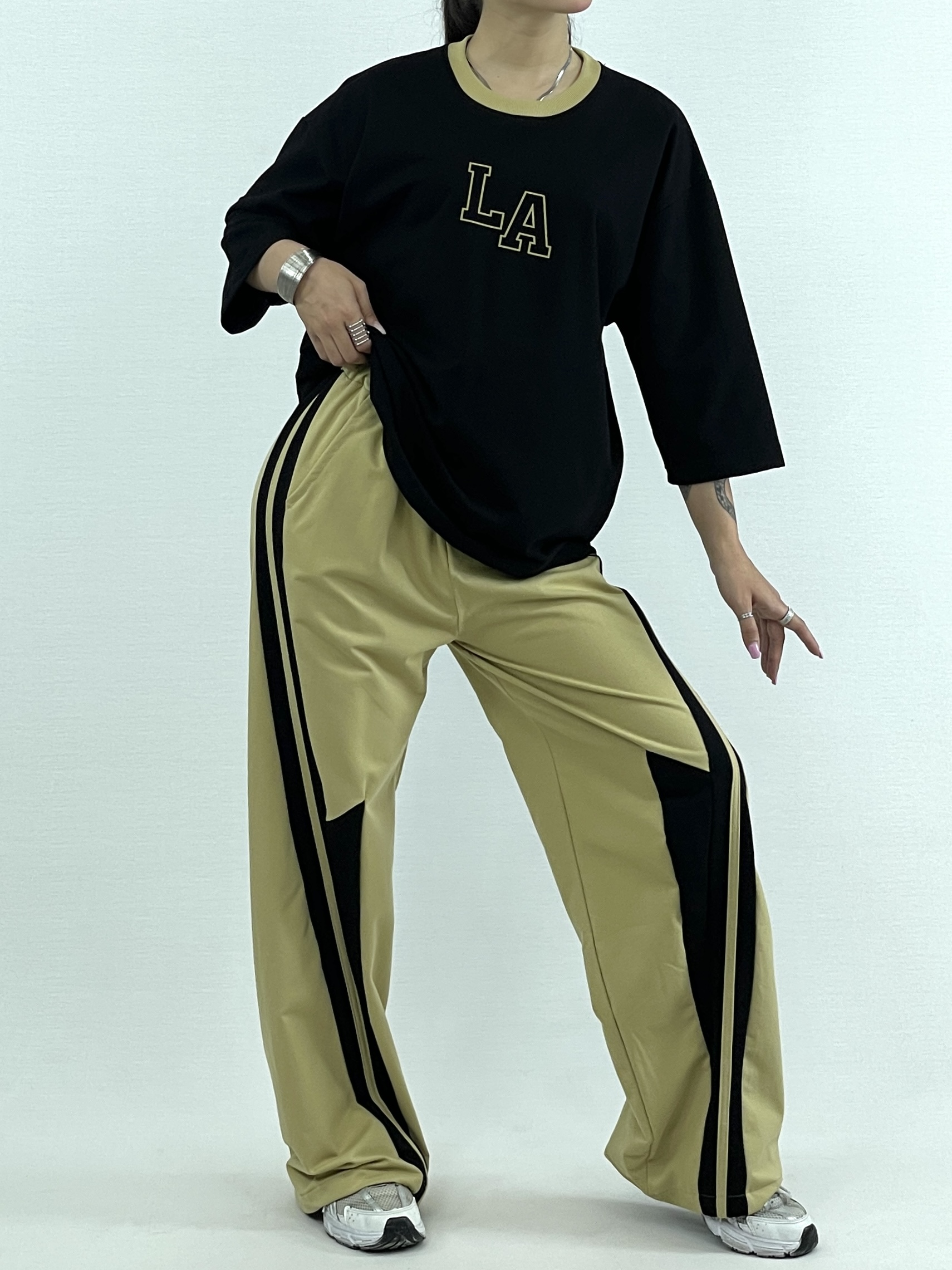 • رنگ تیشرت مشکی(قسمت یقه و متن با شلوار ست میشه)