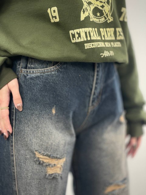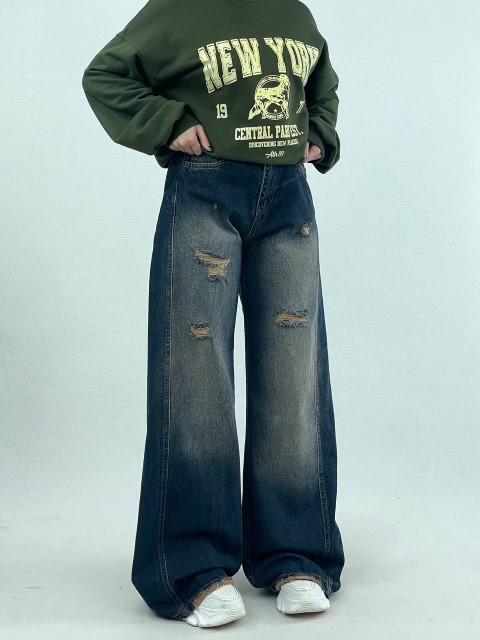 شلوار بگ زخمی(5): متغیر های محصول: رنگ :مشکی سایز بندی (30.31.32.33.34.36) مناسب برای تمامی فصل ها توضیحات درباره محصول: جنس: